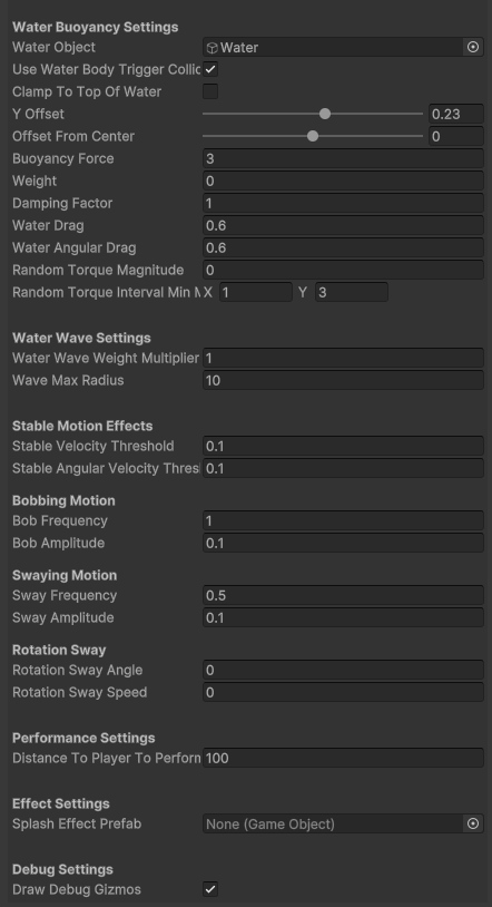 - ๐ง Automatic Water Volume: Designate any trigger volume as a water body that automatically affects any Rigidbody that enters it.